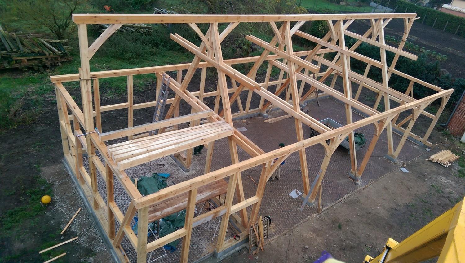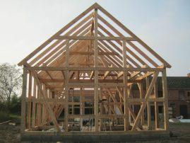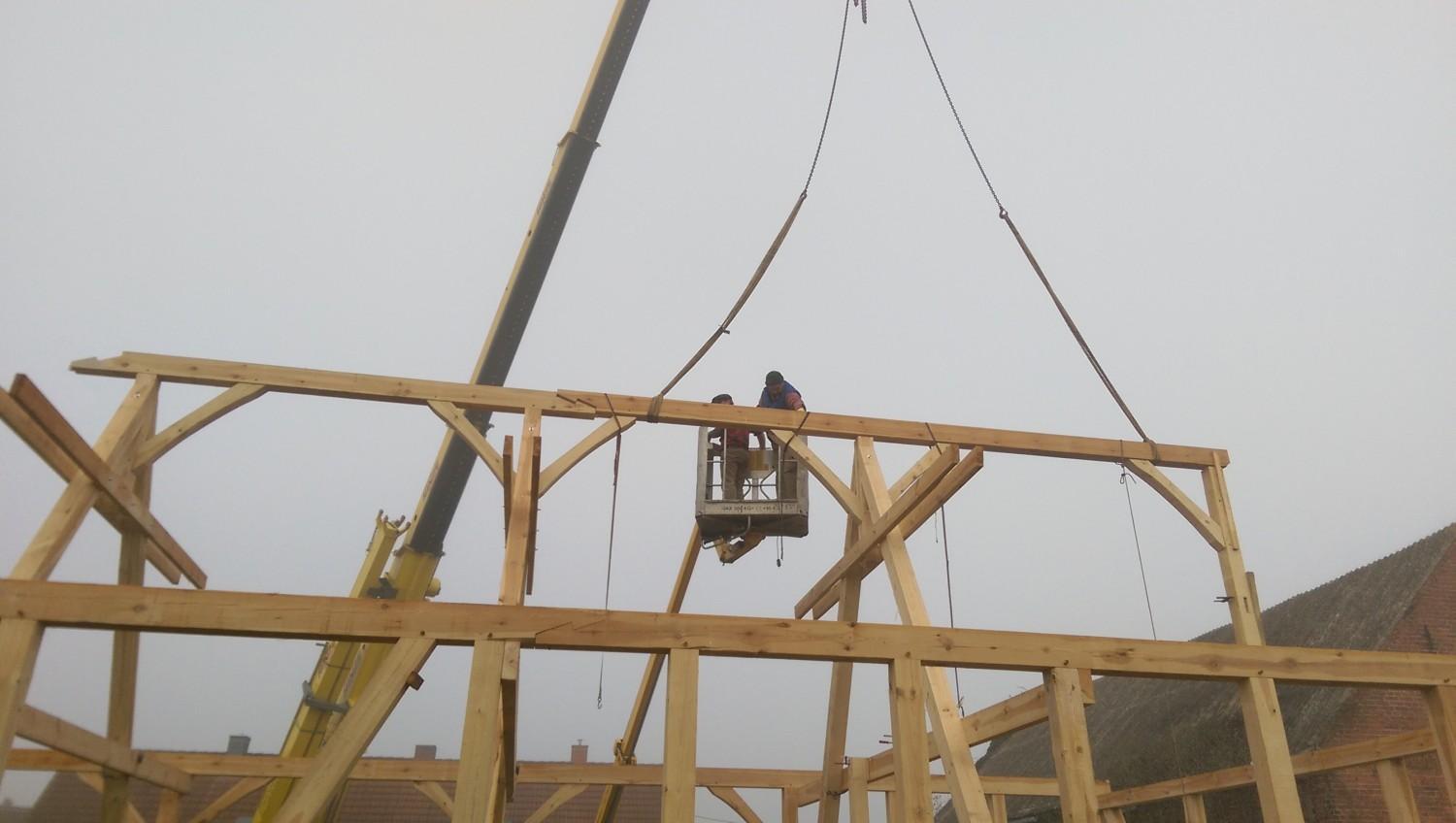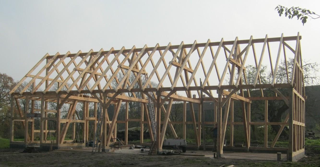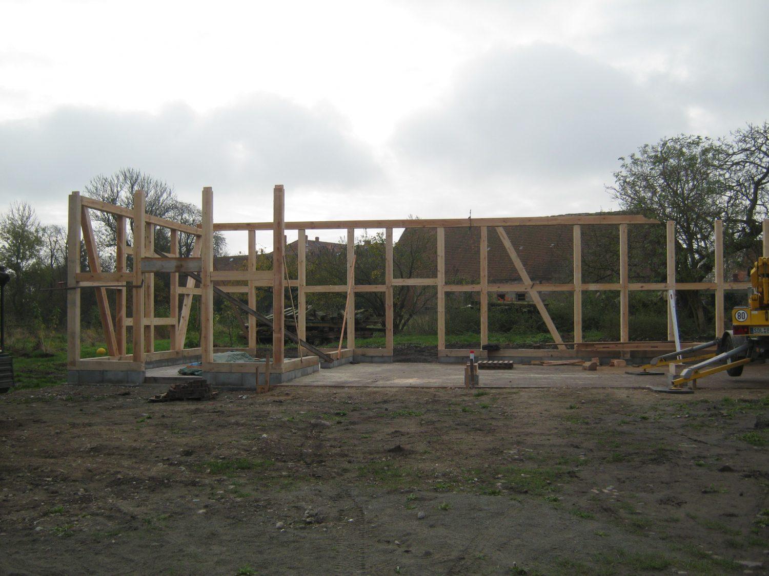 • Feldscheunentragwerk 7*18 m als Bindersystem mit Fachwerkaußenwänden