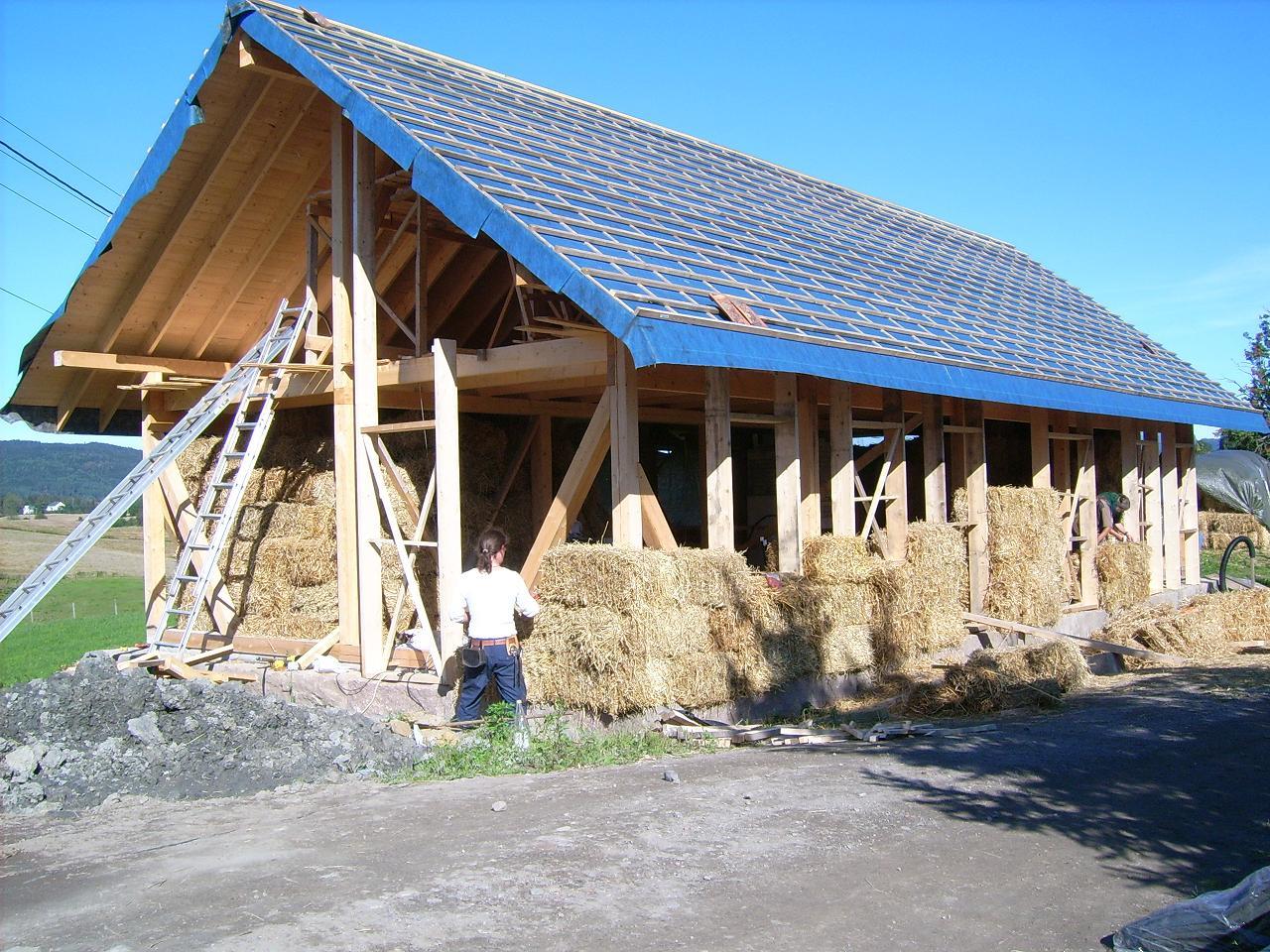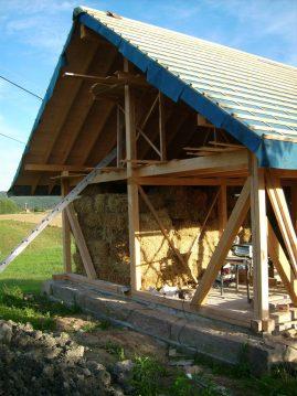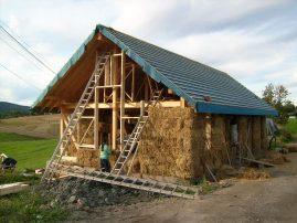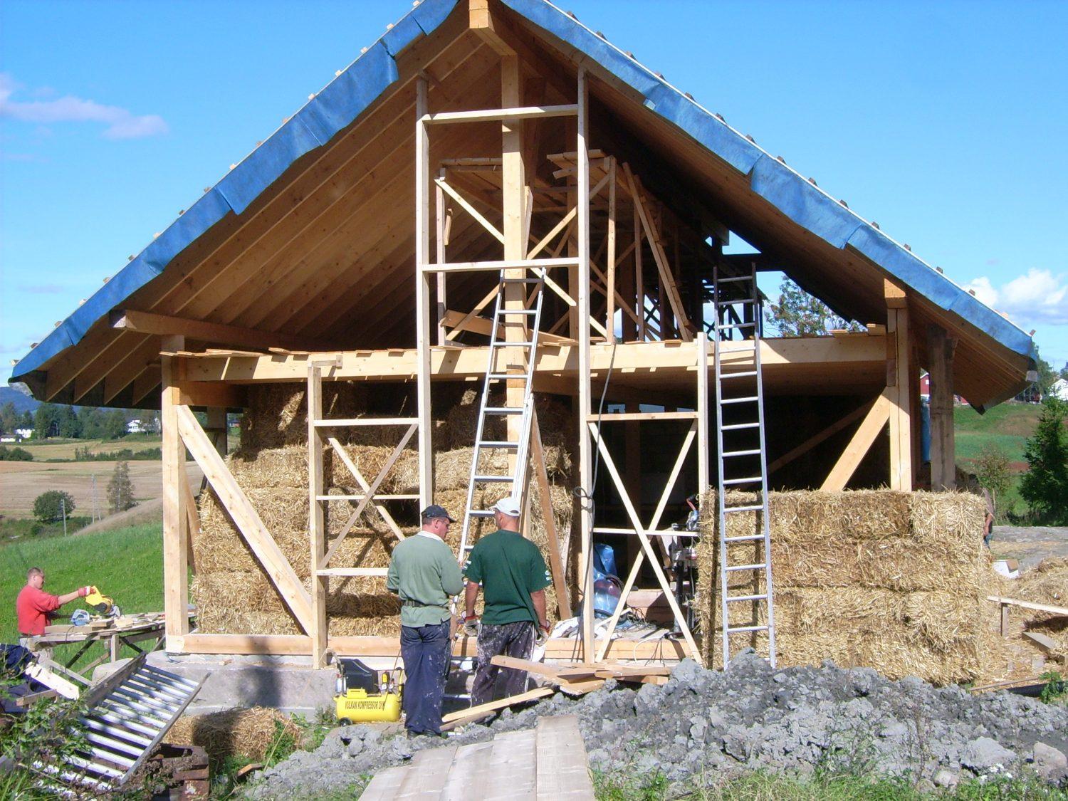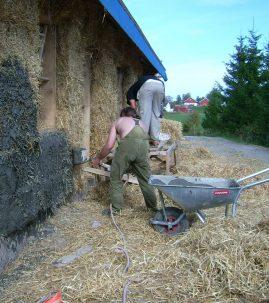 Einfaches, grobes und günstiges Strohballenhaus im begeisterten Selbstbau mit Workshop und Firmenunterstützung