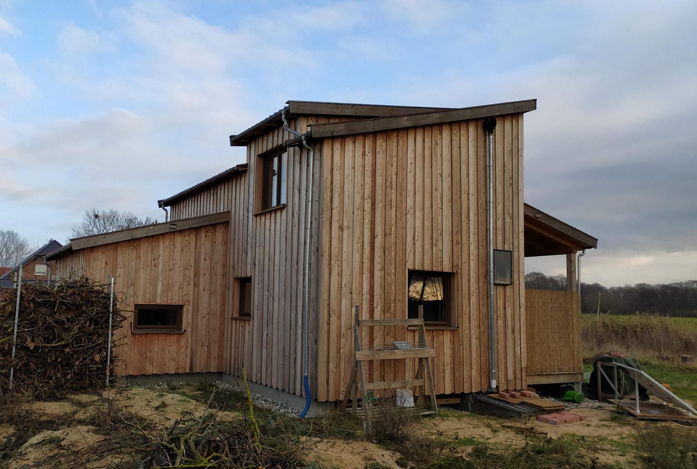 • Holzrahmenbau mit Seegrasdämmung und Holzfaserplatten